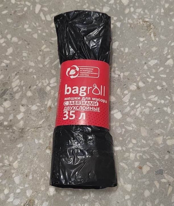 БЭГ РОЛЛ мешки для мусора ПВД С ЗАВЯЗКАМИ 35 л 15шт рул 17мк 1/50